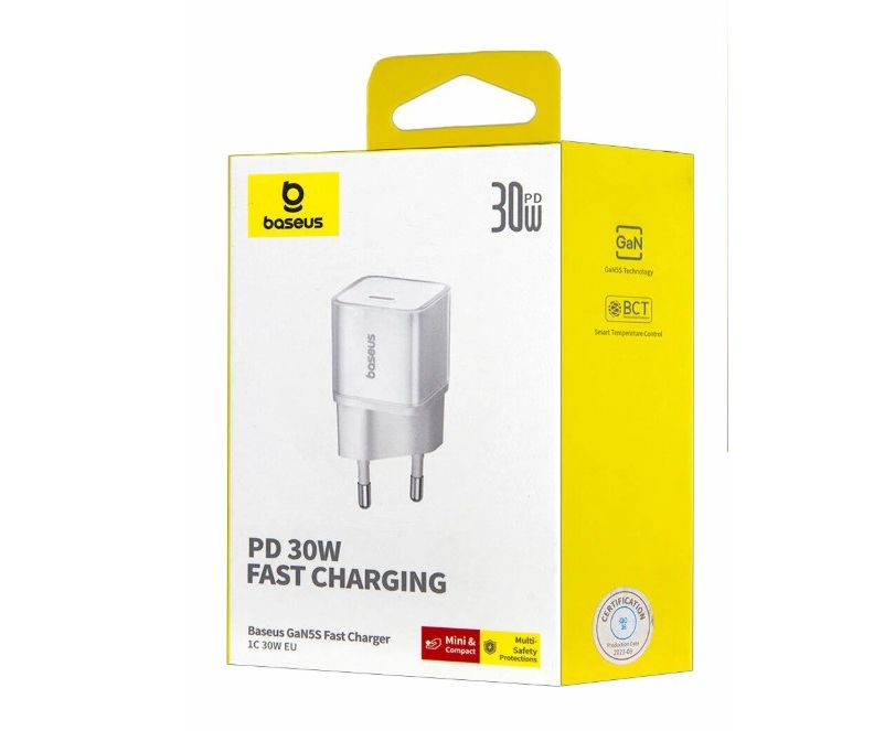Сетевое зарядное устройство Baseus 30W GaN5S USB-C - это высококачественное и функциональное зарядное устройство, которое обеспечивает быструю и безопасную зарядку ваших устройств.