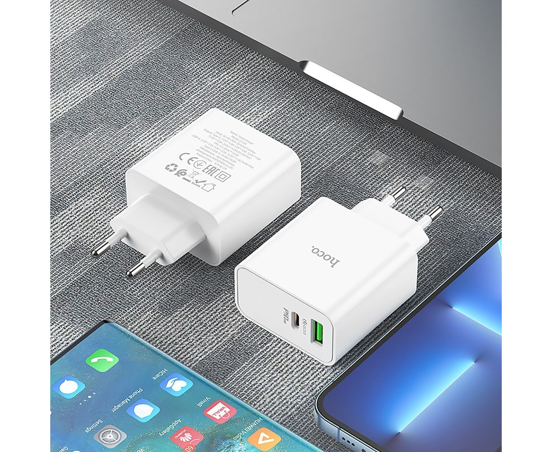 Адаптер Сетевой Hoco C113A PD USB/Type-C 65W (USB/Type-C) (white) (215772)