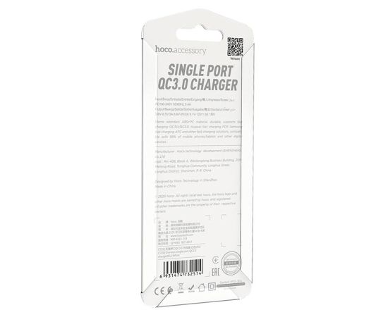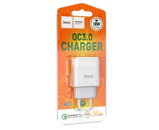 Адаптер Сетевой Hoco C72Q QC3.0 USB 3A/18W (white) (202555)