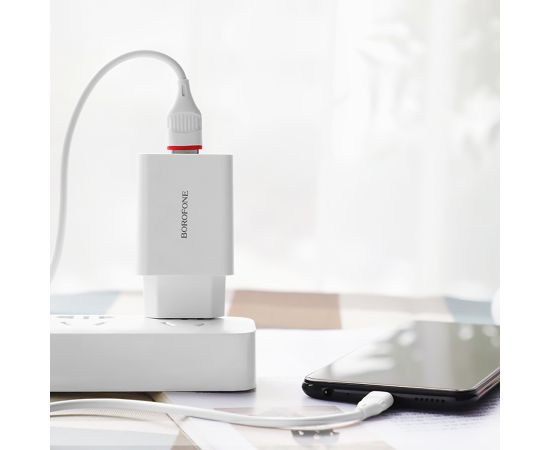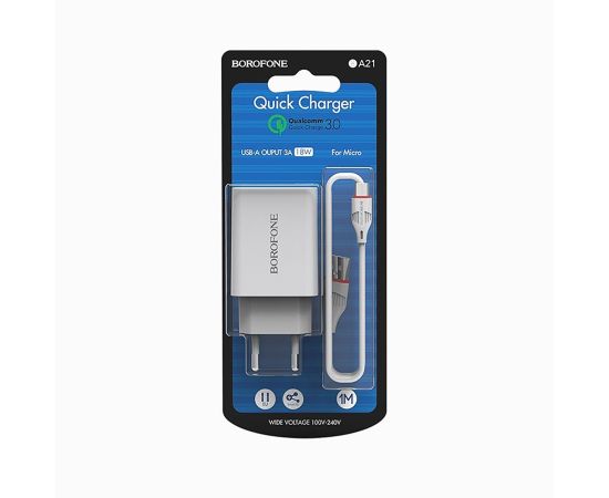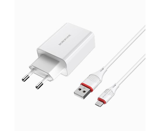 Адаптер Сетевой с кабелем Borofone BA21A Long QC3.0 USB 3A/18W (USB/Micro USB) (white) (124191)