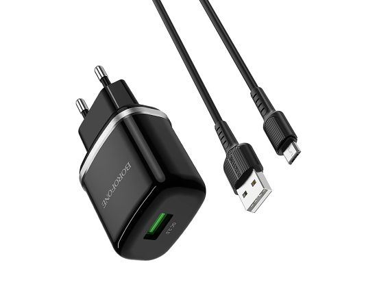 Адаптер Сетевой с кабелем Borofone BA36A High QC3.0 USB 3A/18W (USB/Micro USB) (black) (133678)