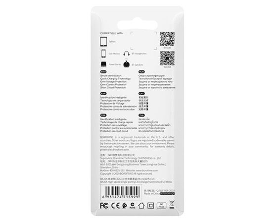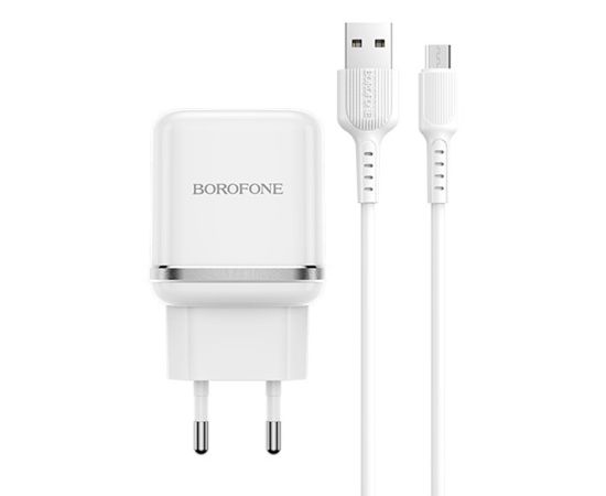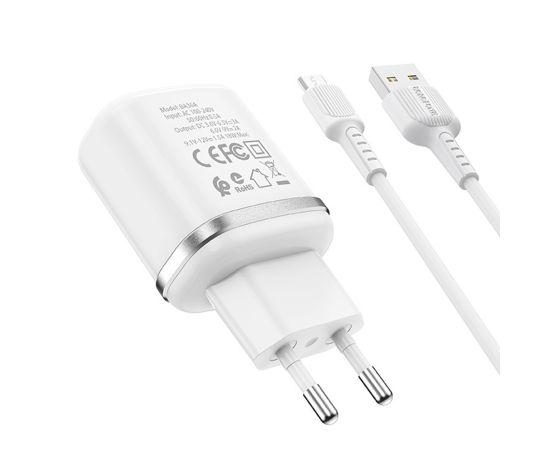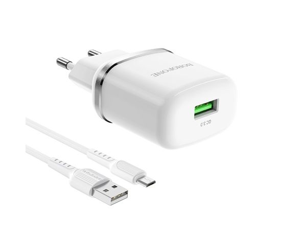 Адаптер Сетевой с кабелем Borofone BA36A High QC3.0 USB 3A/18W (USB/Micro USB) (white) (133679)