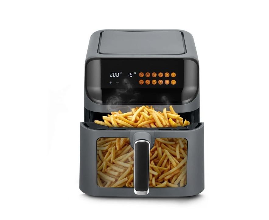 Современный аэрогриль КТ-8107 позволяет готовить большинство продуктов без добавления масла, при этом они получаются сочными и с хрустящей корочкой.