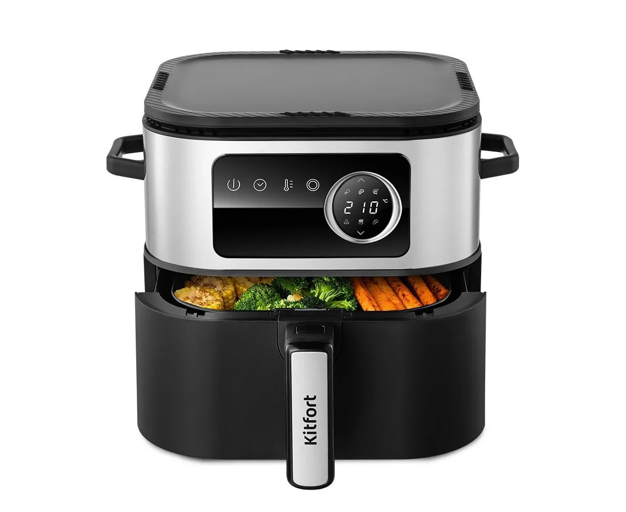 совмещает в себе функции двух устройств: аэрогриля и контактного гриля