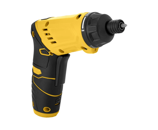 Отвертка КТ-6492 имеет Г-образную форму и удобно лежит в руке. Форму устройства можно легко изменить на прямую для большего удобства использования. Благодаря подсветке в верхней части устройства удобно работать даже в темных местах. В рукоятке отвертки есть фонарь, который можно включить независимо от включения устройства.