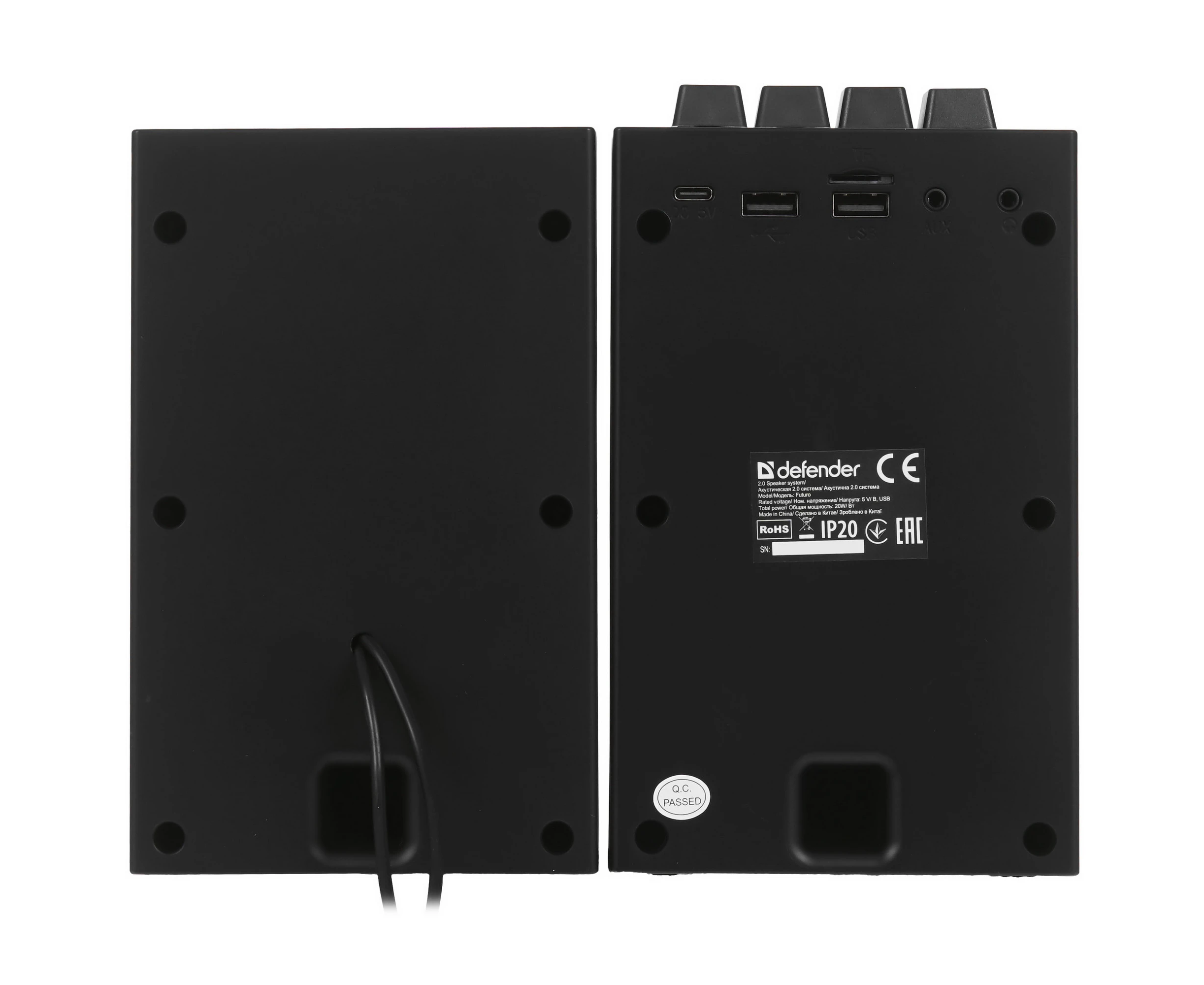 Акустическая система 2.0 DEFENDER Futuro 20 Вт, BT/USB/TF/AUX/2400мА*ч 65087