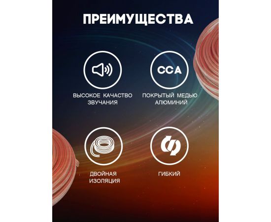 Кабель обеспечивает качественный звук и долговечность. Он легко монтируется и подходит для использования как в помещении, так и в автомобиле. Благодаря своей надежности и высокой производительности, этот акустический кабель станет отличным выбором для всех, кто ценит качественный звук и надежность подключения.