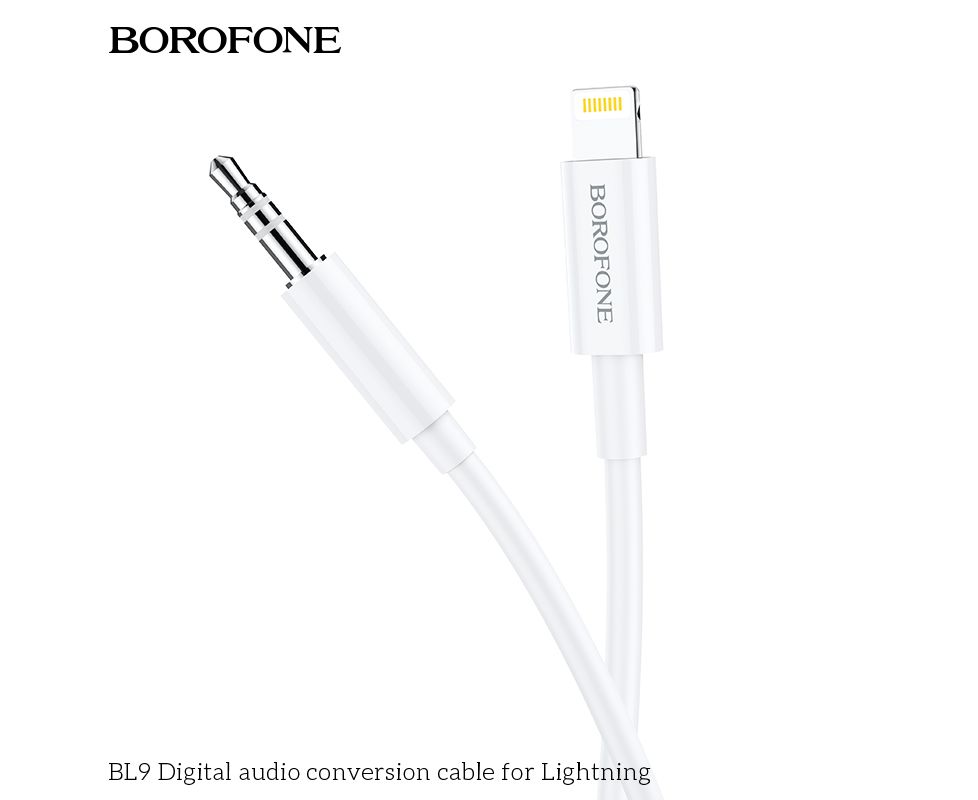Переходник BOROFONE BL9 (штекер lightning - штекер AUX) Digital audio conversion cable белый