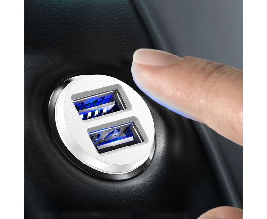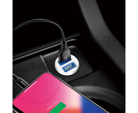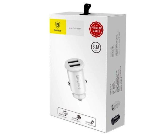Автомобильное зарядное устройство BASEUS Grain C-8K, 2xUSB, 3.1A, белый