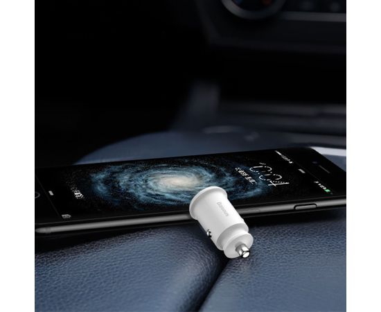 Миниатюрное автомобильное зарядное устройство Baseus Grain зарядит телефон и планшет одновременно прямо в машине. В этой зарядке два универсальных USB-порта, подходящих для большинства существующих мобильных устройств. Максимальная выходная сила тока аксессуара составляет 3.1 А. При подключении двух гаджетов она будет распределяться равномерно на два разъема. У зарядки пластиковый корпус. Она не займет много места в бардачке, а если Вам необходимо будет ее забрать, то она с легкостью поместится к Вам в карман.