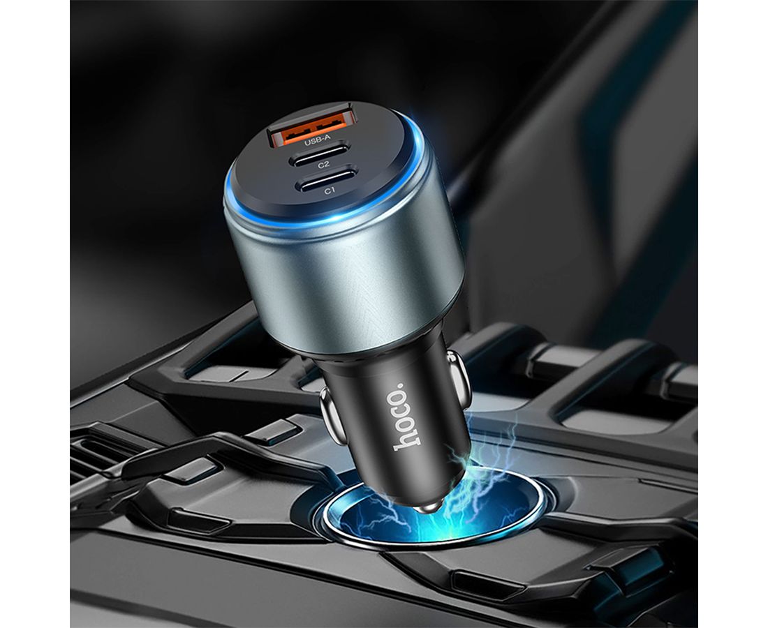 Автомобильное зарядное устройство HOCO NZ9 Galloper, 1xUSB + 2xUSB-C, 95W, черный