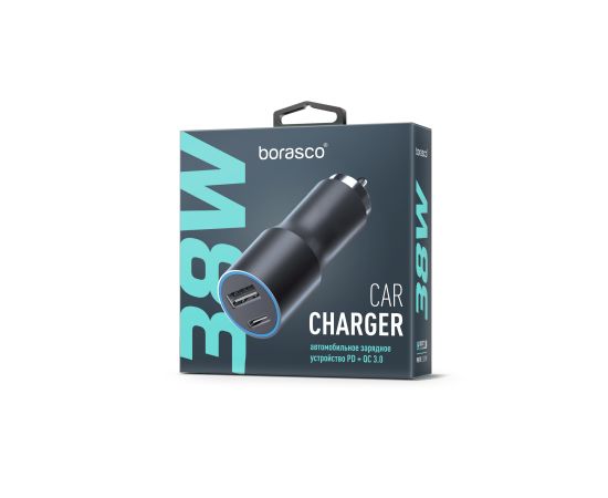 Автомобильное зарядное устройство Power Delivery + QC 3.0, 38W, черное