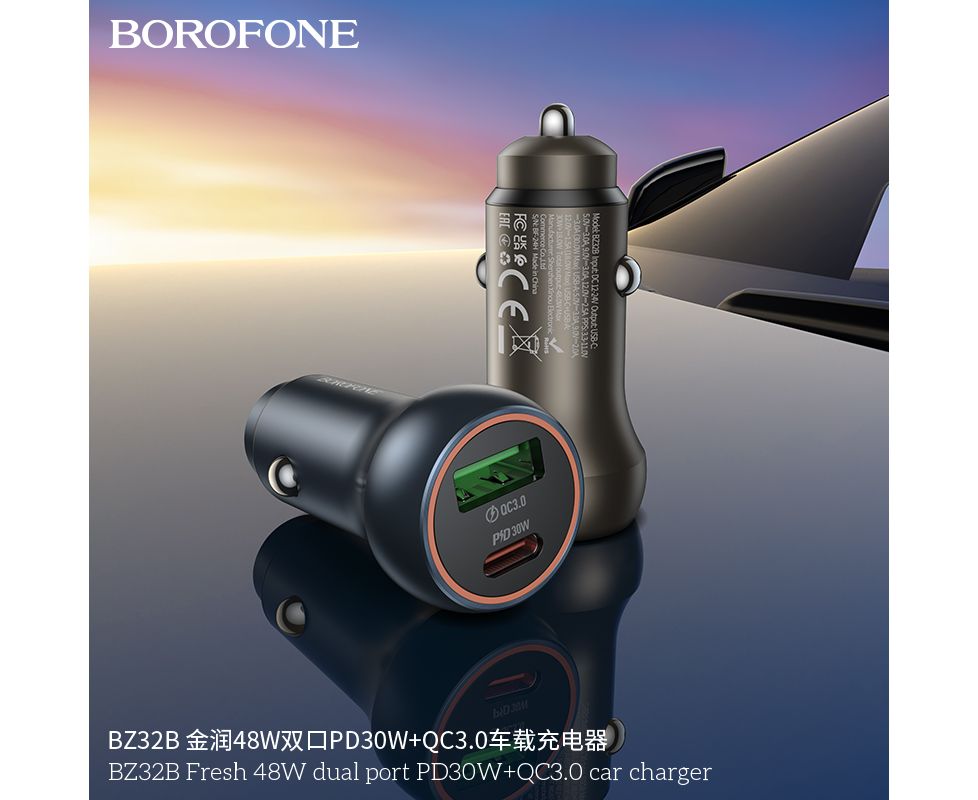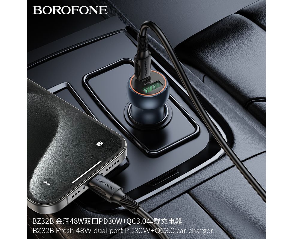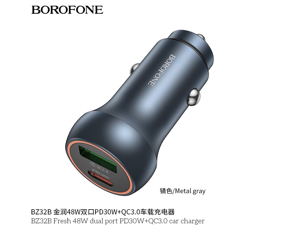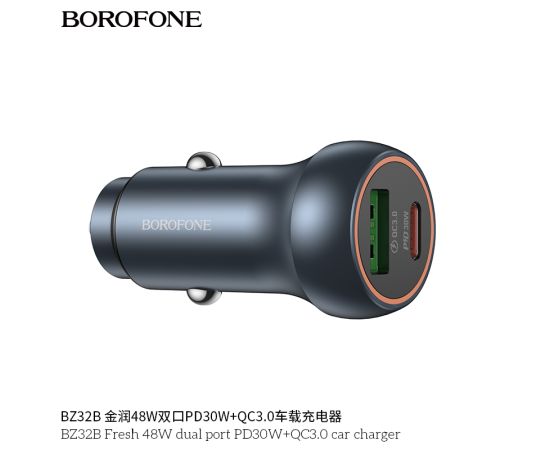 АЗУ BOROFONE BZ32B Fresh 48W dual port PD30W+QC3.0 (металически серый)