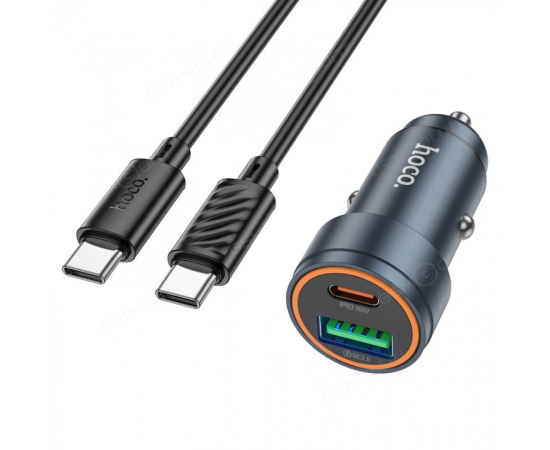 АЗУ HOCO Z57A Glorious PD30W+QC3.0 car charger set + cabel (Type-C + Type-C) (металлически серый)