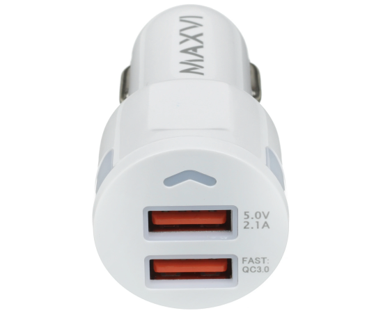 АЗУ Maxvi CCM-522 white 5.2A, 2xUSB, QC3.0 подсветка синяя