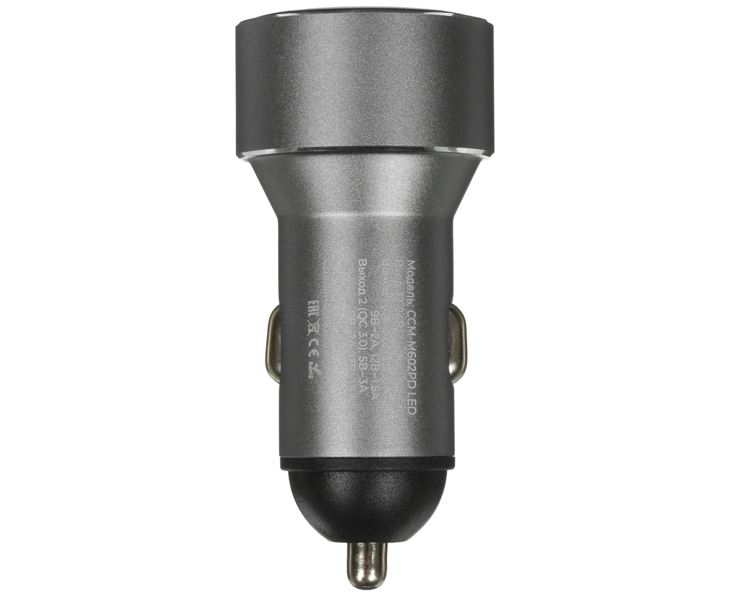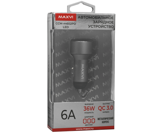АЗУ Maxvi CCM-M602PD LED metallic black 6A, 1xUSB, 1xType-C, QC3.0