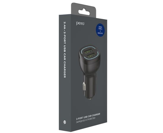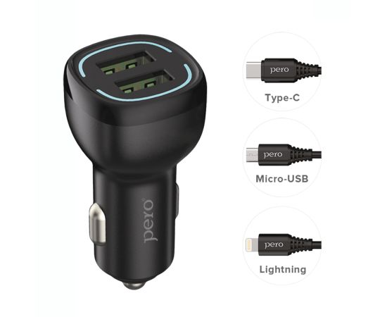 AЗУ PERO AC04 2USB 2.4A AUTOMAX c кабелем Type-C в комплекте, черное