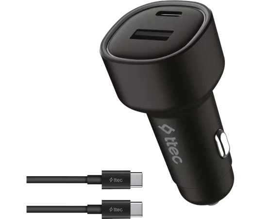 АЗУ TTEC 2CKP02CS SmartCharger Duo PD 48W Car Fast Charger USB-C+USB-A With USB-C-USB-C 3A Cable Black