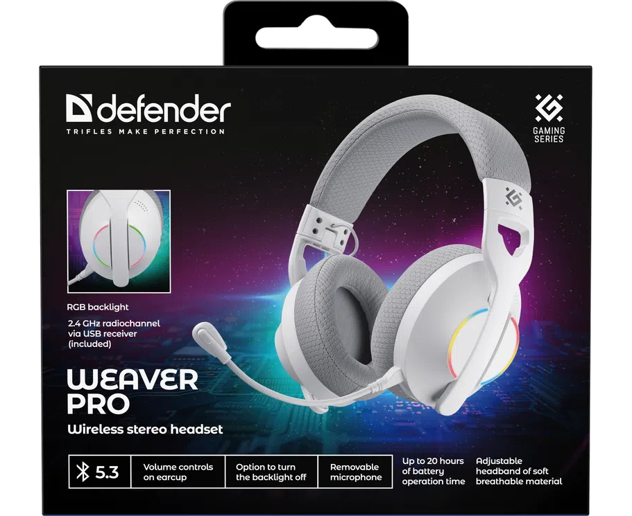Беспроводная гарнитура DEFENDER Weaver Pro BT/2.4G, белый 62550