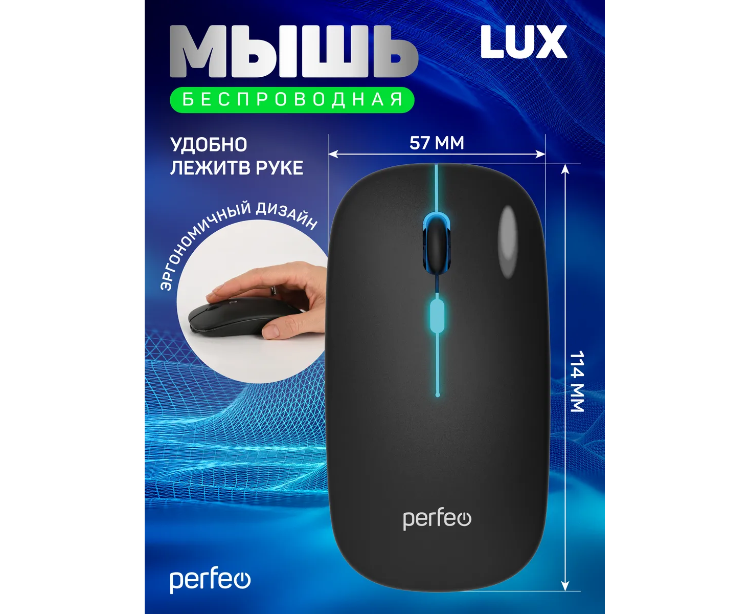 Беспроводная мышь Perfeo LUX — стильное и тихое устройство для комфортной работы в офисе, дома или на ноутбуке. Оснащена высокоточным сенсором с переключаемым разрешением (800/1200/1600 DPI) и бесшумными кнопками, что делает её идеальной для использования в тихих помещениях. Поддерживает два режима подключения: радиочастотный (2.4 ГГц) и Bluetooth — обеспечивает стабильную работу на расстоянии до 10 метров. Усовершенствованная беспроводная технология гарантирует отсутствие задержек. Четыре кнопки и прорезиненное колесо прокрутки обеспечивают удобство управления. Симметричная форма подходит как для правой, так и для левой руки. Внутренняя контурная RGB-подсветка добавляет стиль. В комплект входит мини-ресивер USB и кабель Type-C для зарядки. Аккумулятор ёмкостью 500 мА·ч обеспечивает длительную автономную работу. Plug’n’Play — не требует установки дополнительного ПО.