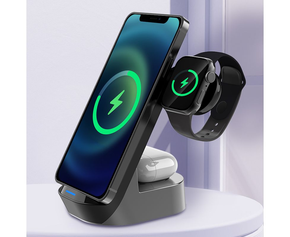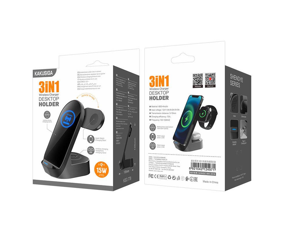 Беспроводное зарядное устройство KAKUSIGA KSC-778 3-in-1 15W Black