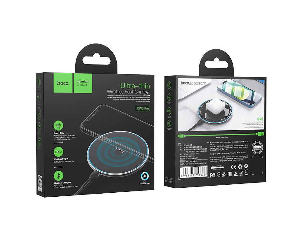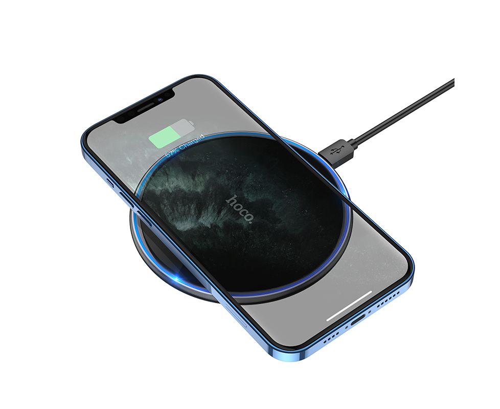 Новая мощная беспроводная зарядка для телефона Hoco CW6 Pro версия. Быстрая беспроводная зарядка выдает мощность в 15W, что позволяет оперативно зарядить ваш смартфон, часы и все что имеет функцию беспроводной зарядки. Беспроводное зарядное устройство имеет ультратонкий дизайн в диаметре всего 100мм и шириной в 8мм. В комплекте с блоком зарядки идет кабель разъемом USB Type C 1м.