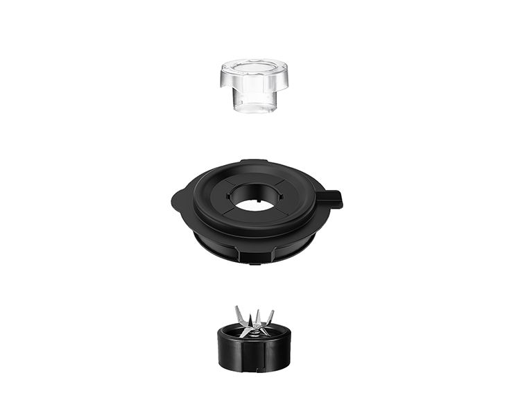 Блок электродвигателя, чаша блендера, нож, крышка с отверстием для подачи продуктов, колпачок, руководство по эксплуатации, гарантийный талон