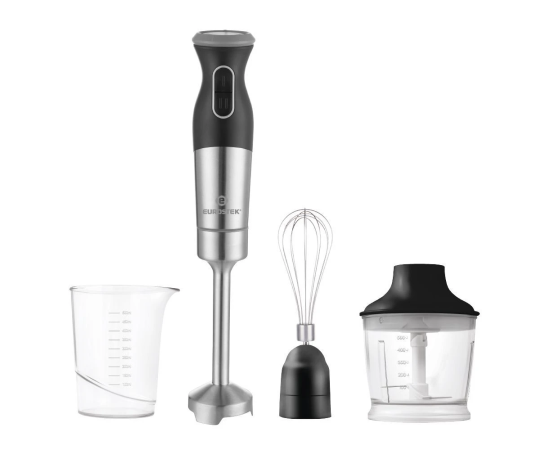 Блендер погружной EHB-1000. Мощность 1200 Вт, низкий уровень шума, 2 скорости, стальной нож, мерный стакан - 500мл, стальной венчик, измельчитель - 500мл