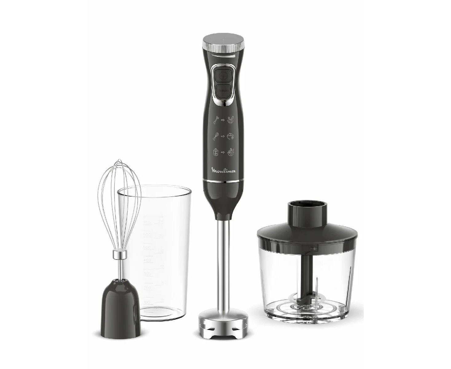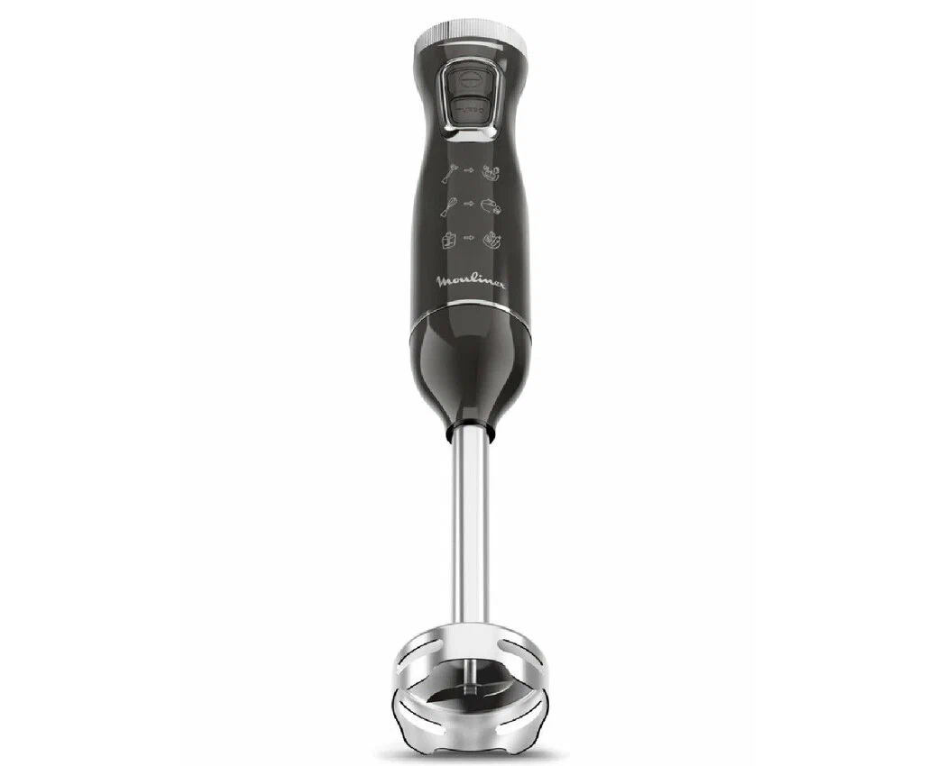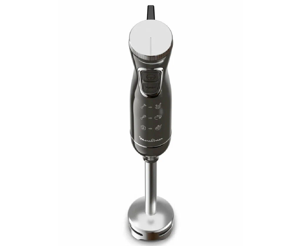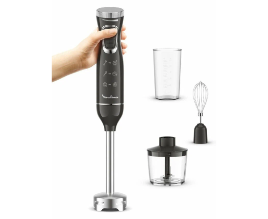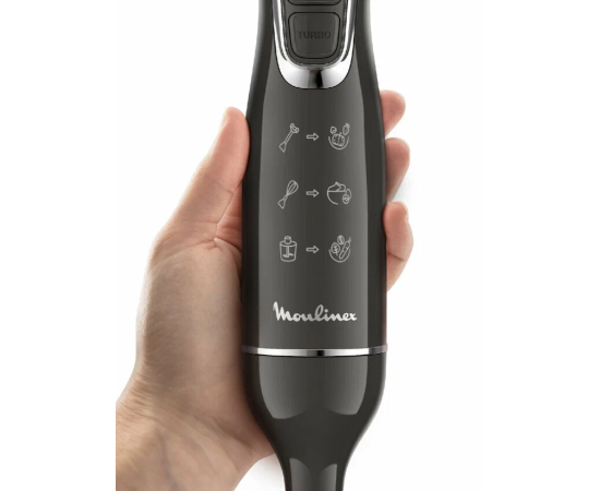 Погружной блендер Moulinex DD5R38F0 — компактная (20,6х5,2х5,2 см) модель, которая благодаря сменным насадкам включает в себя три прибора: блендер, чоппер, миксер. Эргономичный дизайн и механическое интуитивное управление делают процесс приготовления максимально комфортным за счет точного контроля степени измельчения.
