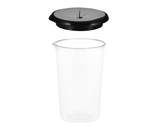 Также в наборе вместительный мерный стакан 0,7 л из небьющегося пластика (BPA free) с защитной крышкой от брызг.