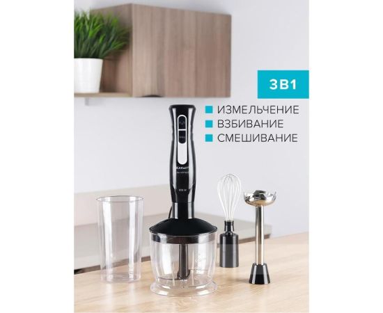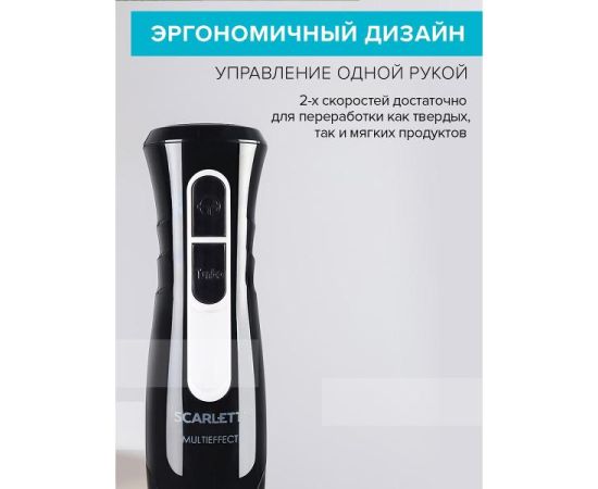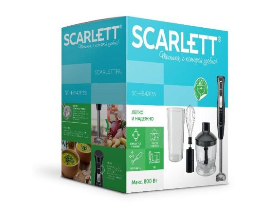 Погружной блендер Scarlett SC-HB42F35 мощностью 800 Вт функционирует от сети электричества. В наборе имеется прозрачный пластиковый стакан с мерными делениями для определения объема содержимого. Эргономичная ручка не выскальзывает при эксплуатации. Погружная часть насадок не подвержена окислению при контакте с водой. Съемные детали можно очищать водой, губкой, салфеткой, специальным неабразивным средством для посуды.