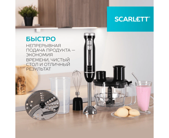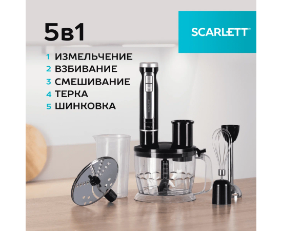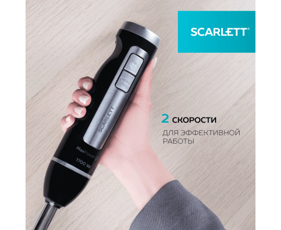 Общие характеристики Бренд Scarlett Версия Ростест (EAC) Цвет товара черный Тип погружной Максимальная мощность 1700 Вт Количество скоростей 2 Функциональные возможности Режимы импульсный, турборежим Дополнительные функции защита от перегрева, защита от перегрузки Насадки венчик для взбивания, измельчитель, насадка для шинковки, терка Особенности Материал погружной части металл В комплекте мерный стакан