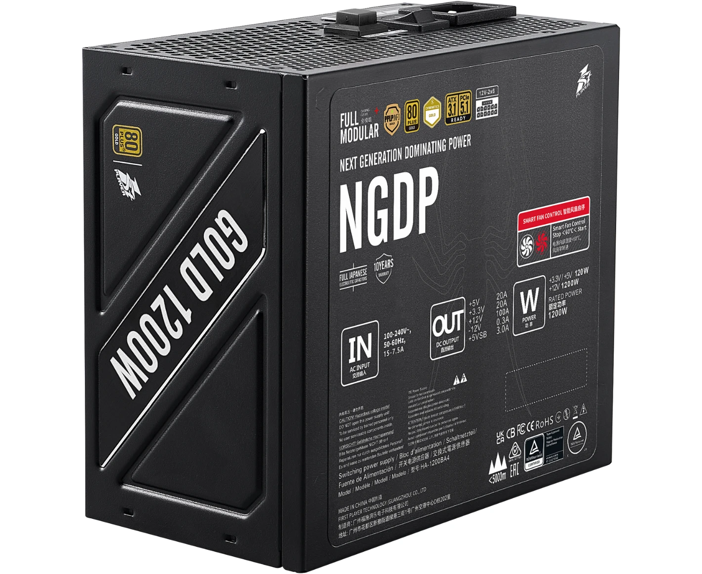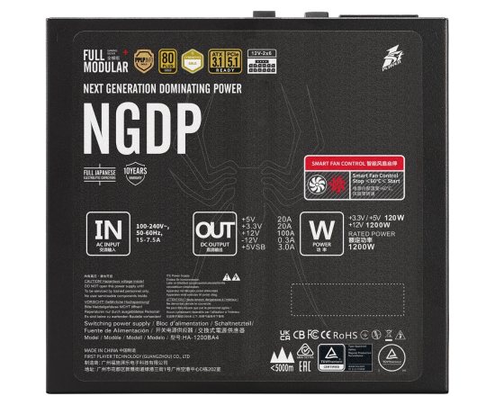 Блок питания 1STPLAYER NGDP Gold 1200W Black (HA-1200BA4) / ATX 3.1, PCle 5.1, APFC, 80 Plus Gold, LLC+DC-DC, 120mm fan, full modular