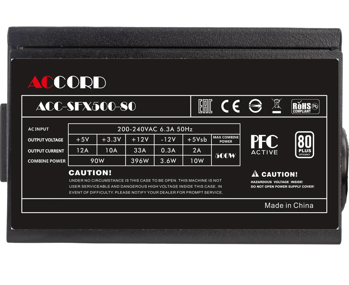 Блок питания Accord ACC-SFX500-80, SFX 500W 24pin APFC 80mm fan 3xSATA RTL