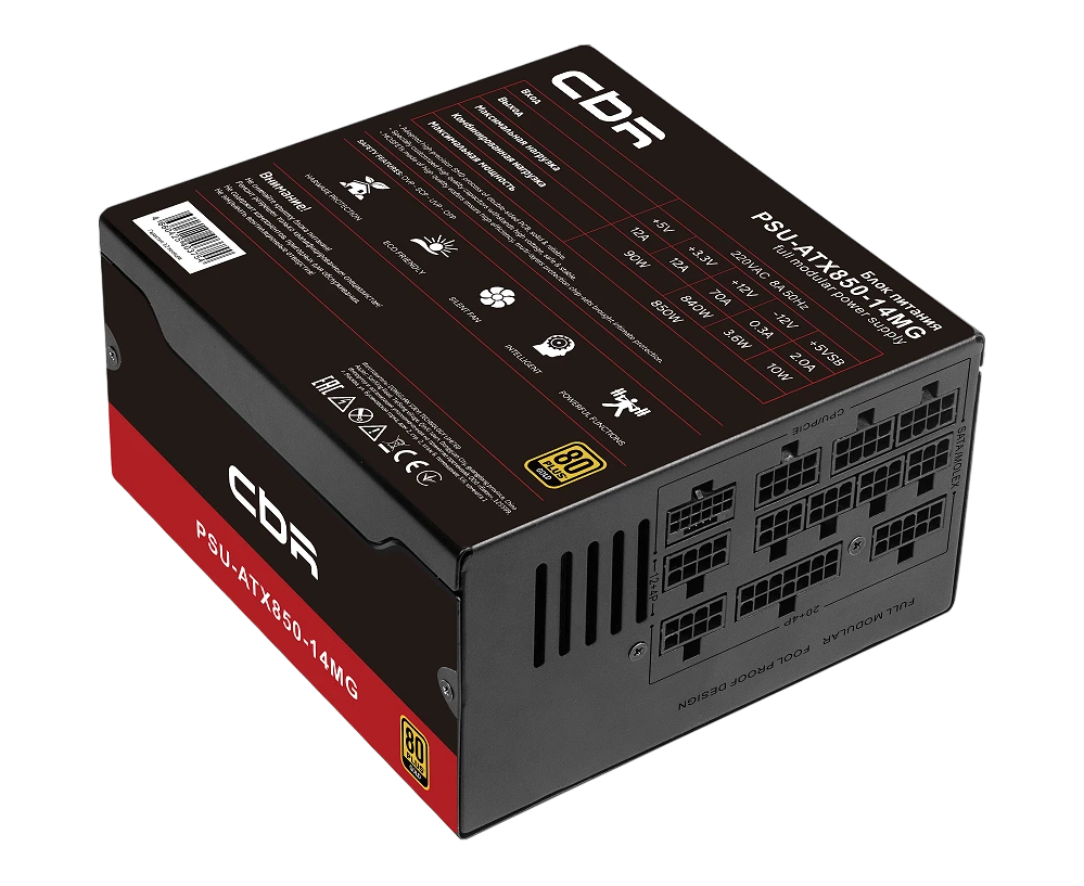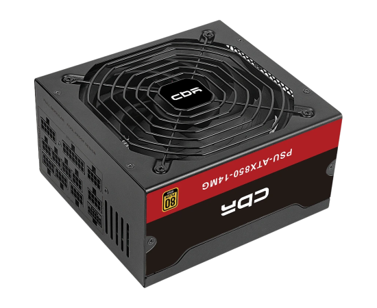 Блок питания CBR PSU-ATX850-14MG 850W, ATX, 80+ Gold, Full Modular, DC-DC, APFC, 24pin, 1*PCIE5.1(12+4pin), 2*8-pin(4+4P), 3*6+2pin, 5*SATA, 14cm fan