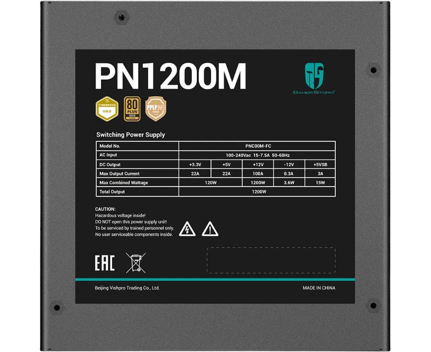 Блок питания Deepcool GamerStorm PN1200M (GS PN1200M) (ATX 3.1, 1200W, Full Cable Management, PWM 135mm fan, Active PFC, 80+ Gold, Gen5 PCIe) RET