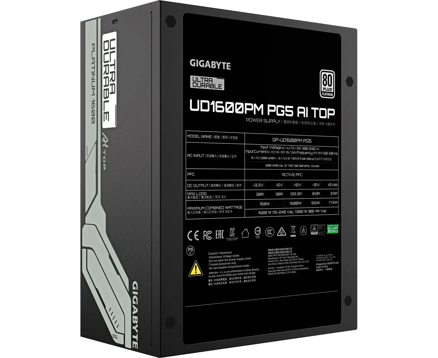 Блок питания Gigabyte UD1600PM PG5 AI TOP (GP-UD1600PM PG5) 1600W, 80Plus, Platinum, Полностью модульный, PCIe Gen 5.0, ATX 3.1 compatible