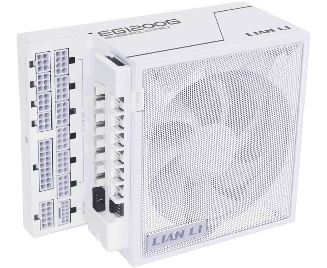 Блок питания Lian Li EG1200G (G9P.EG1200G.WH00.RU) / White / ATX 3.1, 1200W, 80 Plus Gold, PCIe 5.1, APFC, USB/Fan HUB, 120mm FDB Fan, Fully Modular
