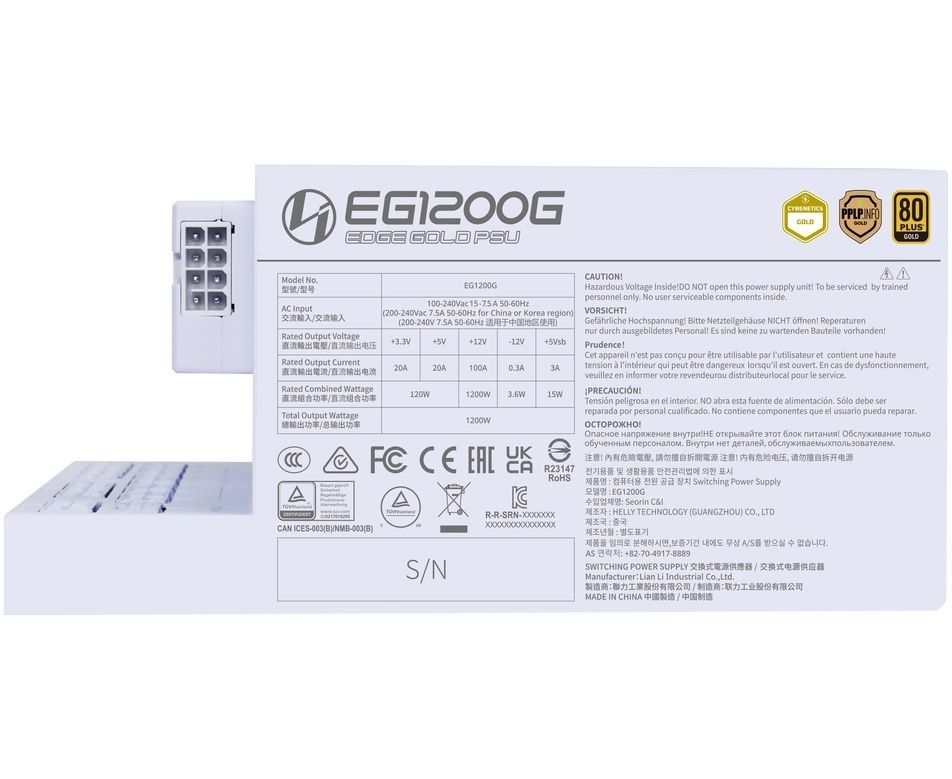 Блок питания LIAN LI EDGE, 1200W, 80+ Gold, ATX3.1 (G9P.EG1200G.WH00.RU), белый