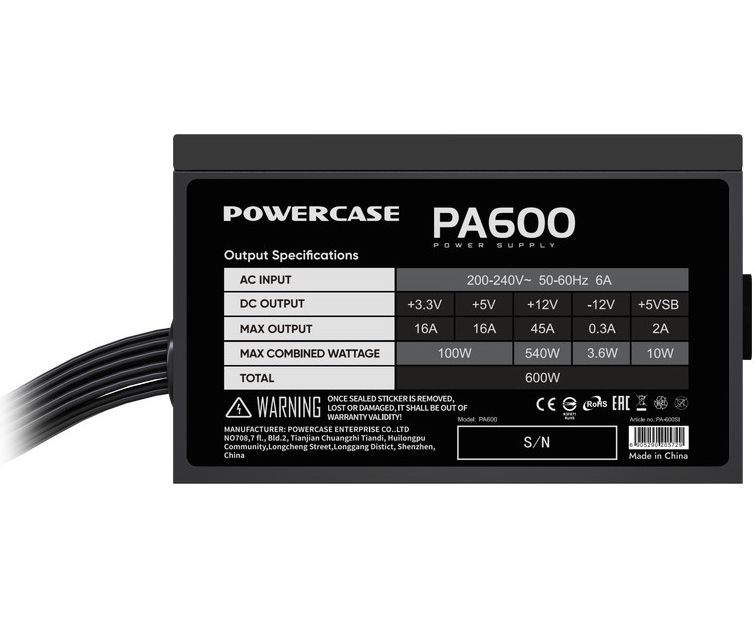 Блок питания Powercase PA600, 600W, ATX 2.31 (PA-600SI)