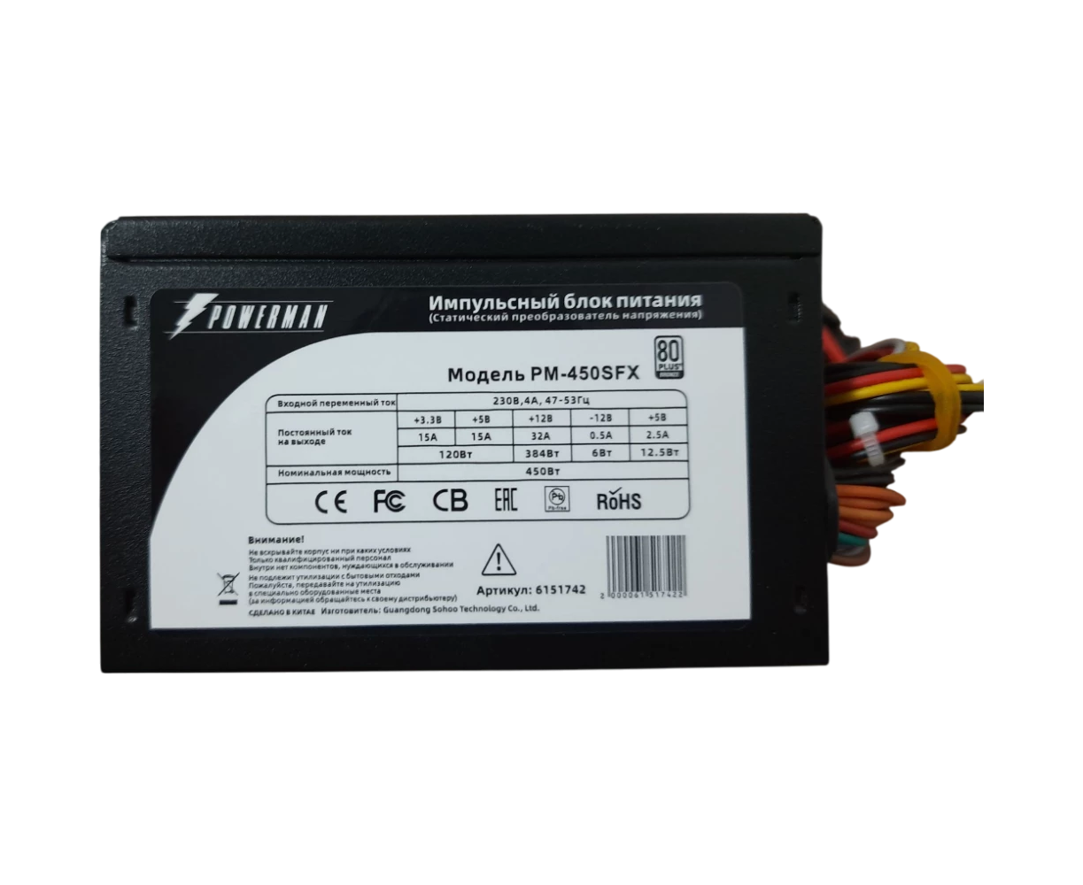 Блок питания Powerman PM-450SFX (6151742) 450W 80+ (8cm fan)