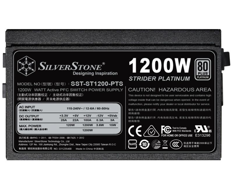Блок питания Silverstone Strider Platinum Series SST-ST1200-PTS , 1200W 80 Plus Platinum, ATX PC Power Supply, 120mm HYB quient fan, 140mm depth