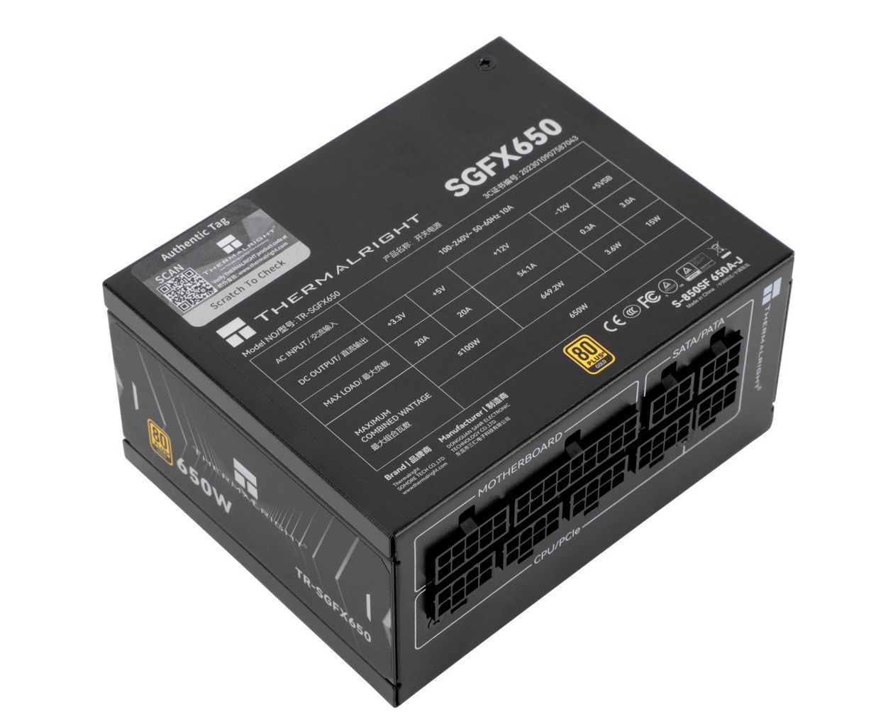 Блок питания Thermalright TR-SGFX 650W 80+ Gold (SFX, 3.1, Full modular, 1x24(20+4)pin, 1xCPU 8(4+4)pin, 2xPCIe*2 8(6+2)pin, 3xSATA3)