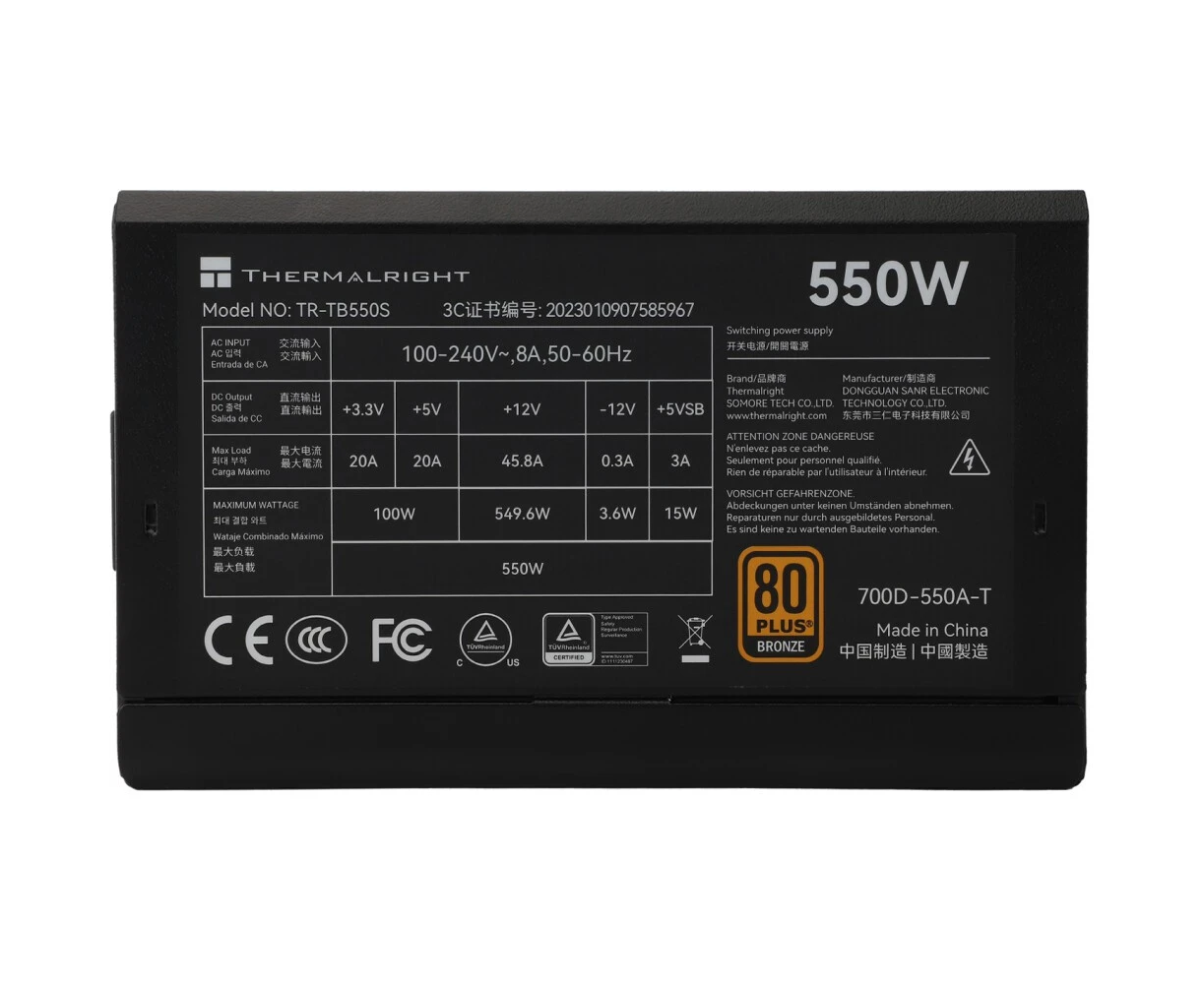 Блок питания Thermalright TR-TB550S 550W 80+ Bronze (ATX, 3, Non-modular, 1x24(20+4)pin 550mm, 1xCPU*2 8(4+4)pin 600+150mm, 1xPCIe 8(6+2)pin 450mm)
