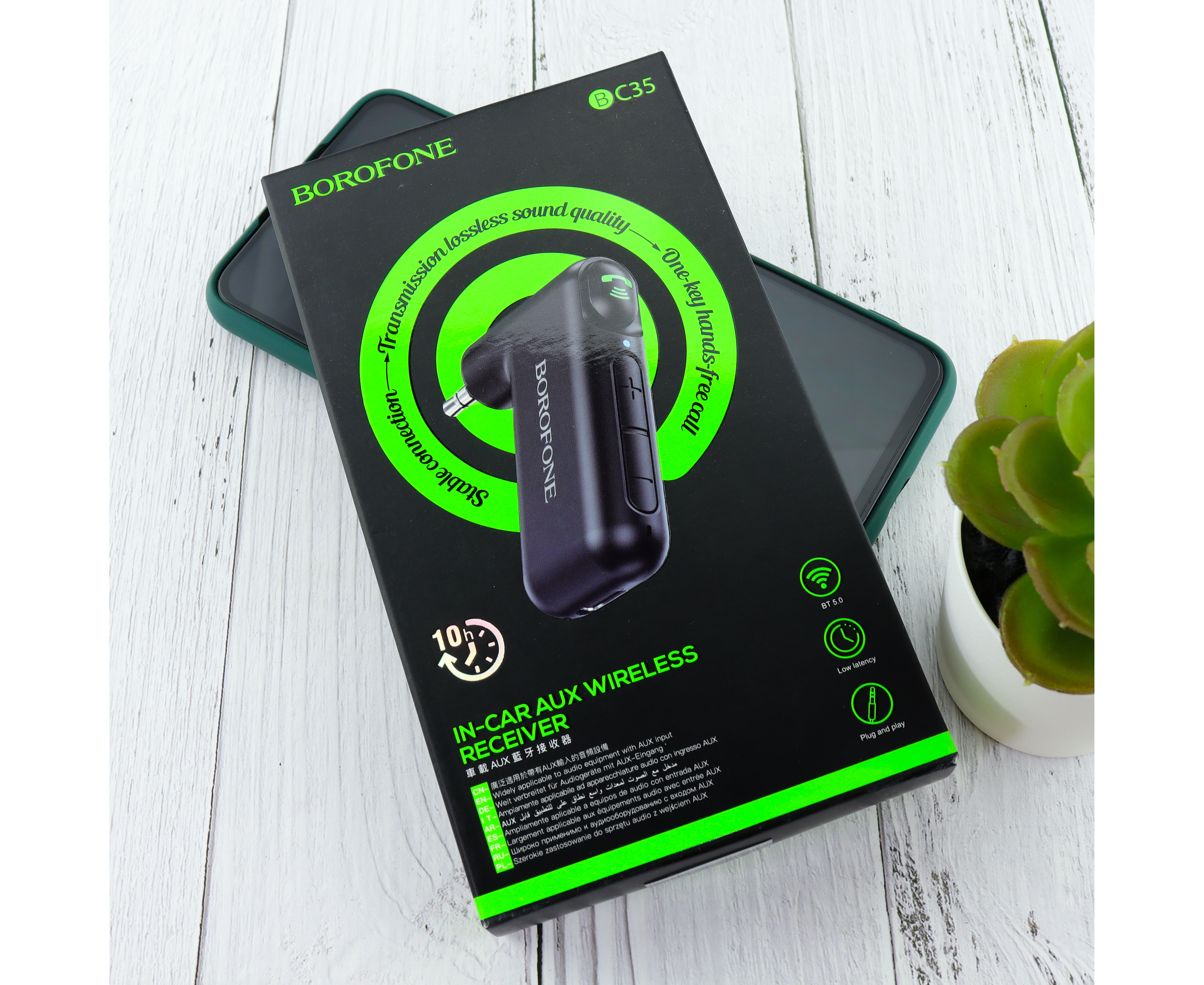 Bluetooth адаптер BOROFONE BC35 Wideway car AUX BT ресивер автомобильный USB AUX с микрофоном (чёрный)