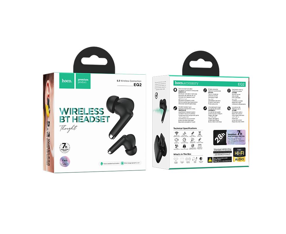 Hoco EQ2 - беспроводные вакуумные наушники, которые обеспечивают высокое качество звука и комфортное ношение. Они оснащены Bluetooth 5.3, что позволяет им быстро и легко соединяться с устройством. Наушники имеют встроенный микрофон, который позволяет использовать их для звонков и голосового помощника. Они имеют эргономичный дизайн и удобное управление, что делает их идеальным выбором для повседневного использования. Емкость аккумулятора: чехол для зарядки 320 мАч