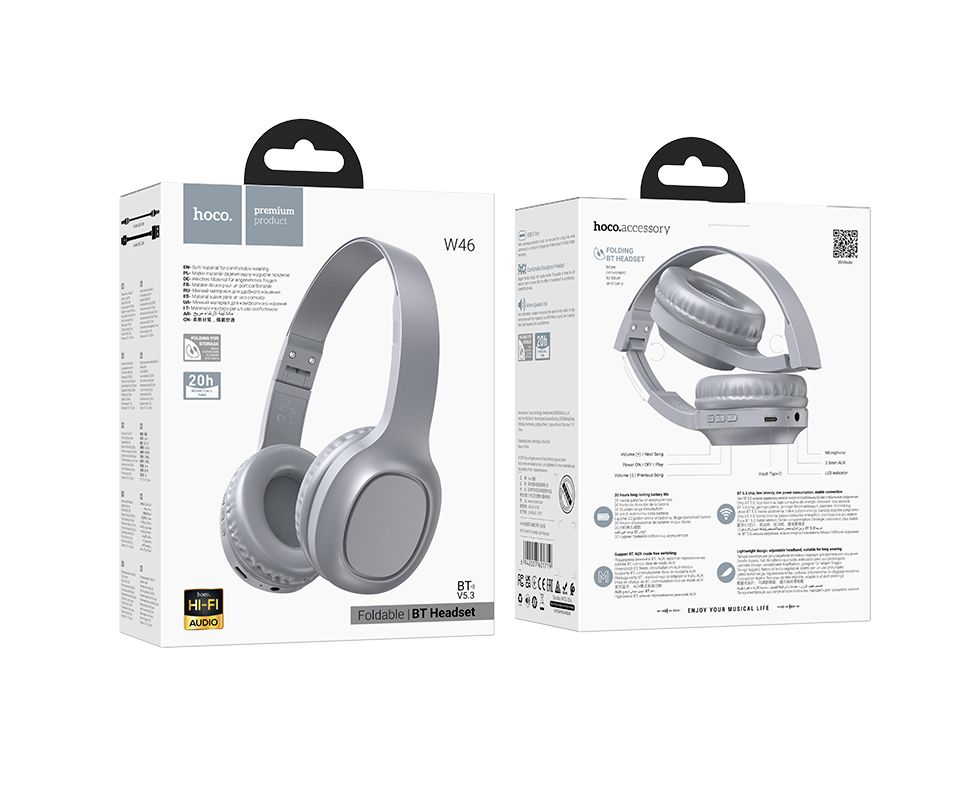 Bluetooth-наушники полноразмерные Bluetooth 5.3 200mah Hoco W46 Charm (Light Blue Grey)