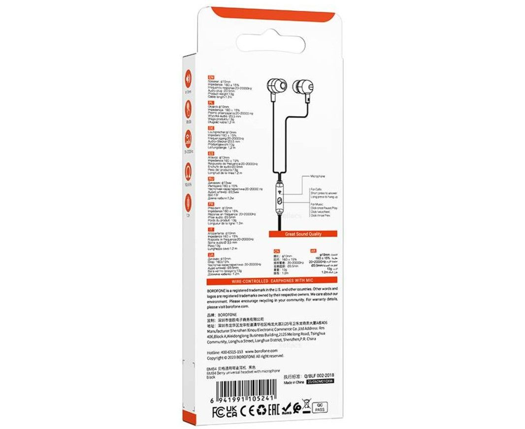 Гарнитура проводная Borofone BM84/ Черный