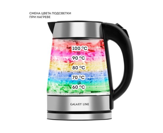 Электрический чайник GALAXY LINE GL0561 с корпусом из термостойкого стекла и светодиодной подсветкой совмещает в себе инновационные технологии и лаконичный трендовый дизайн.