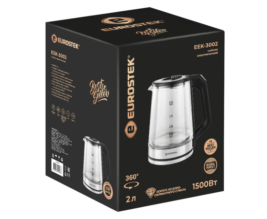 Электрочайник Eurostek EEK-3002 2л, стекло